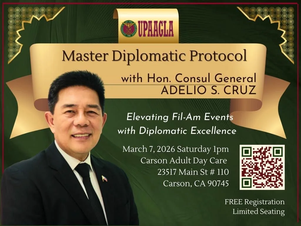Titled “Master Diplomatic Protocol: Elevate Filipino American Events with Diplomatic Excellence,” the session is designed for event organizers, chamber leaders, nonprofit boards, and cultural producers who regularly host elected officials, diplomats, and distinguished guests.